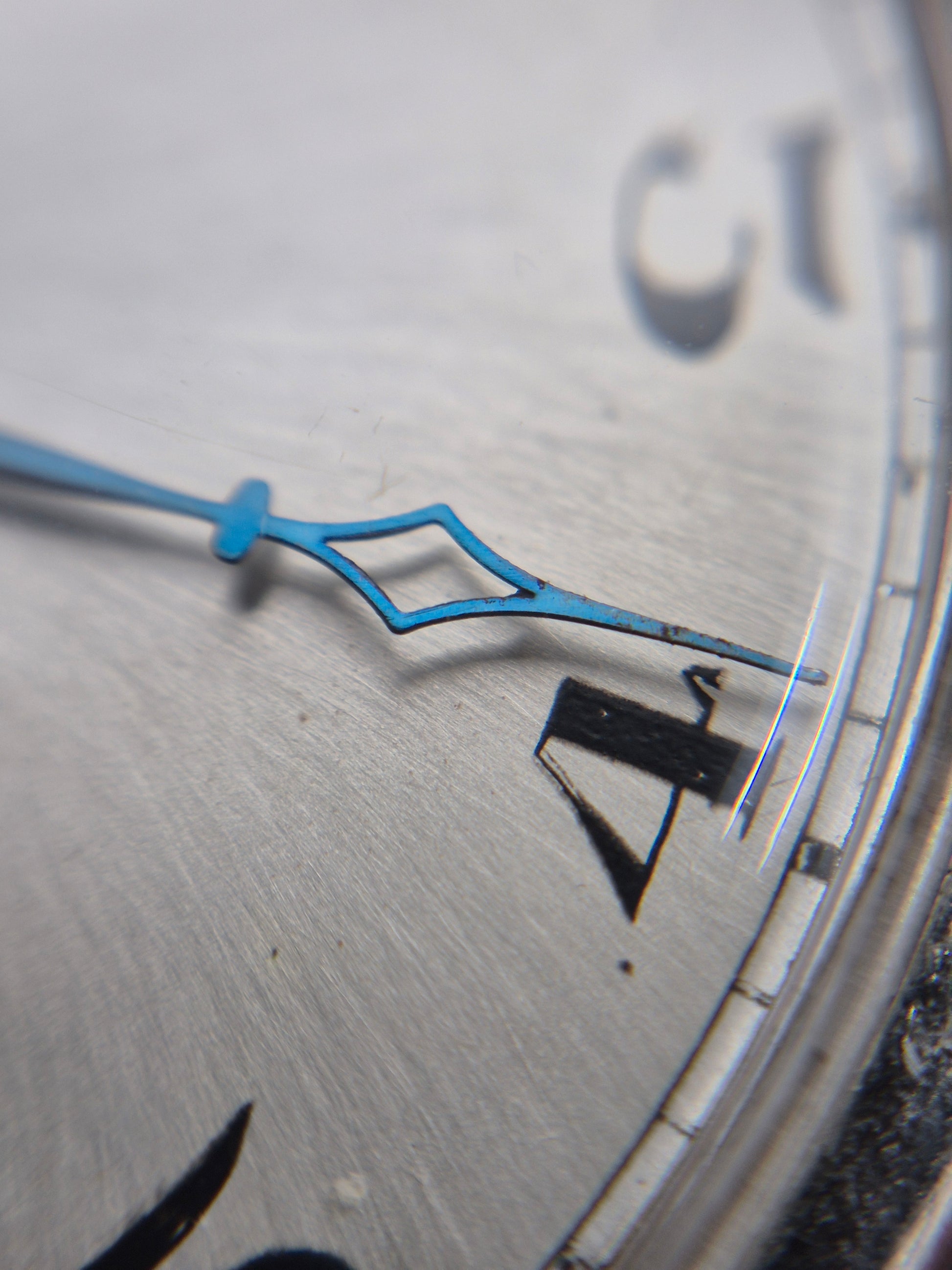 De achterkant van het zakhorloge is door de vorige eigenaar per ongeluk afgebroken bij de scharnieren, maar opent/sluit nog prima.