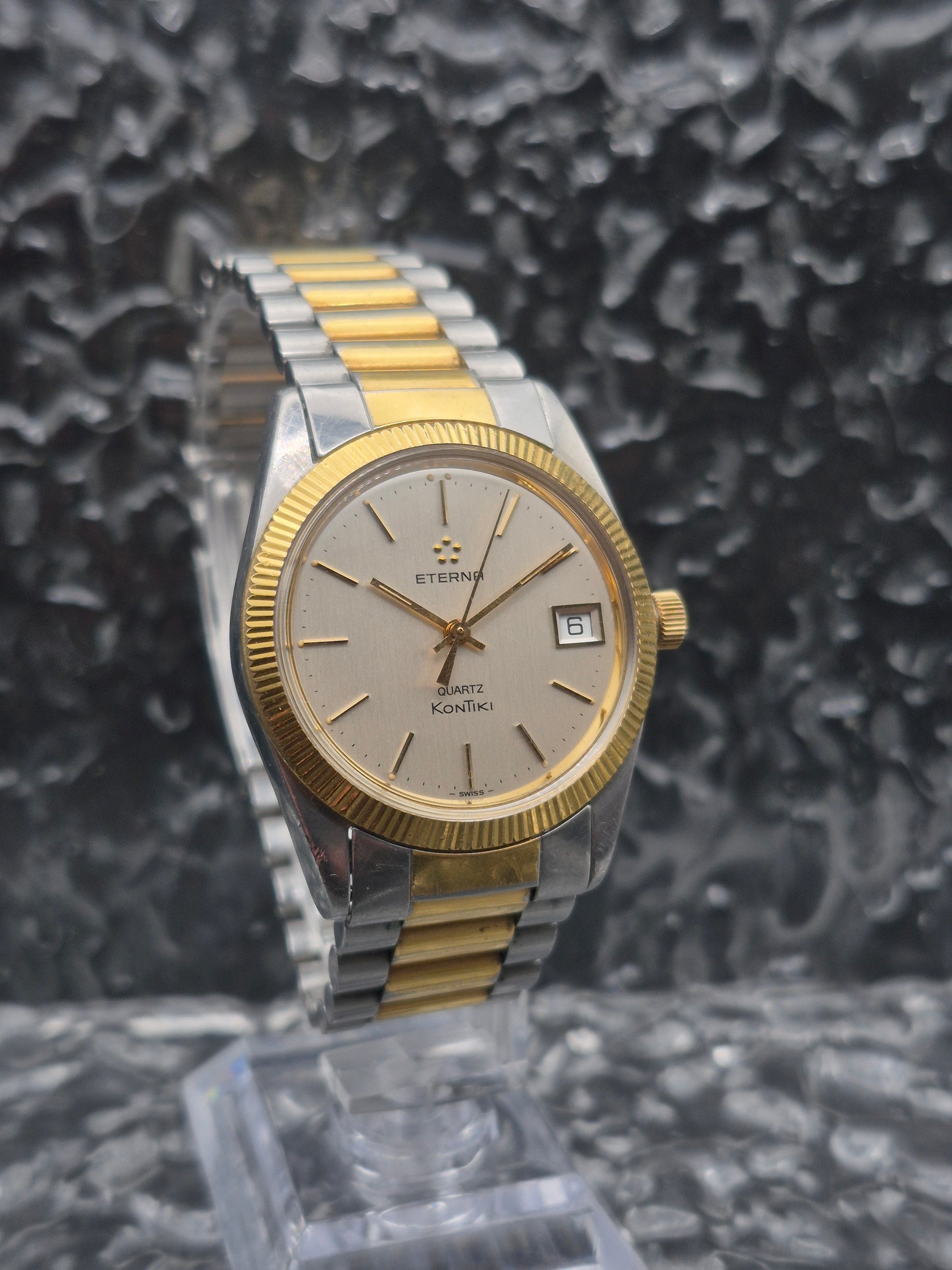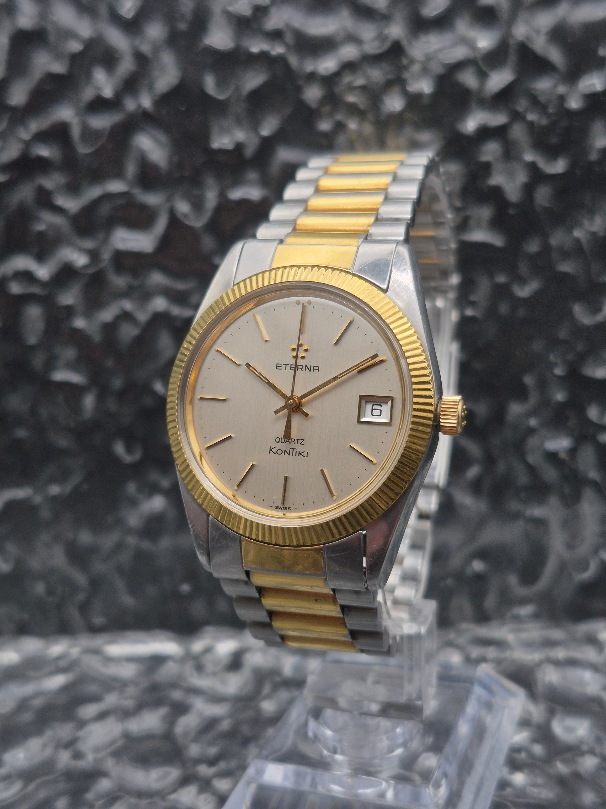 Eterna Kontiki Quartz Ref. 738.1523.4 Two Tone Fluted Bezel 37mm