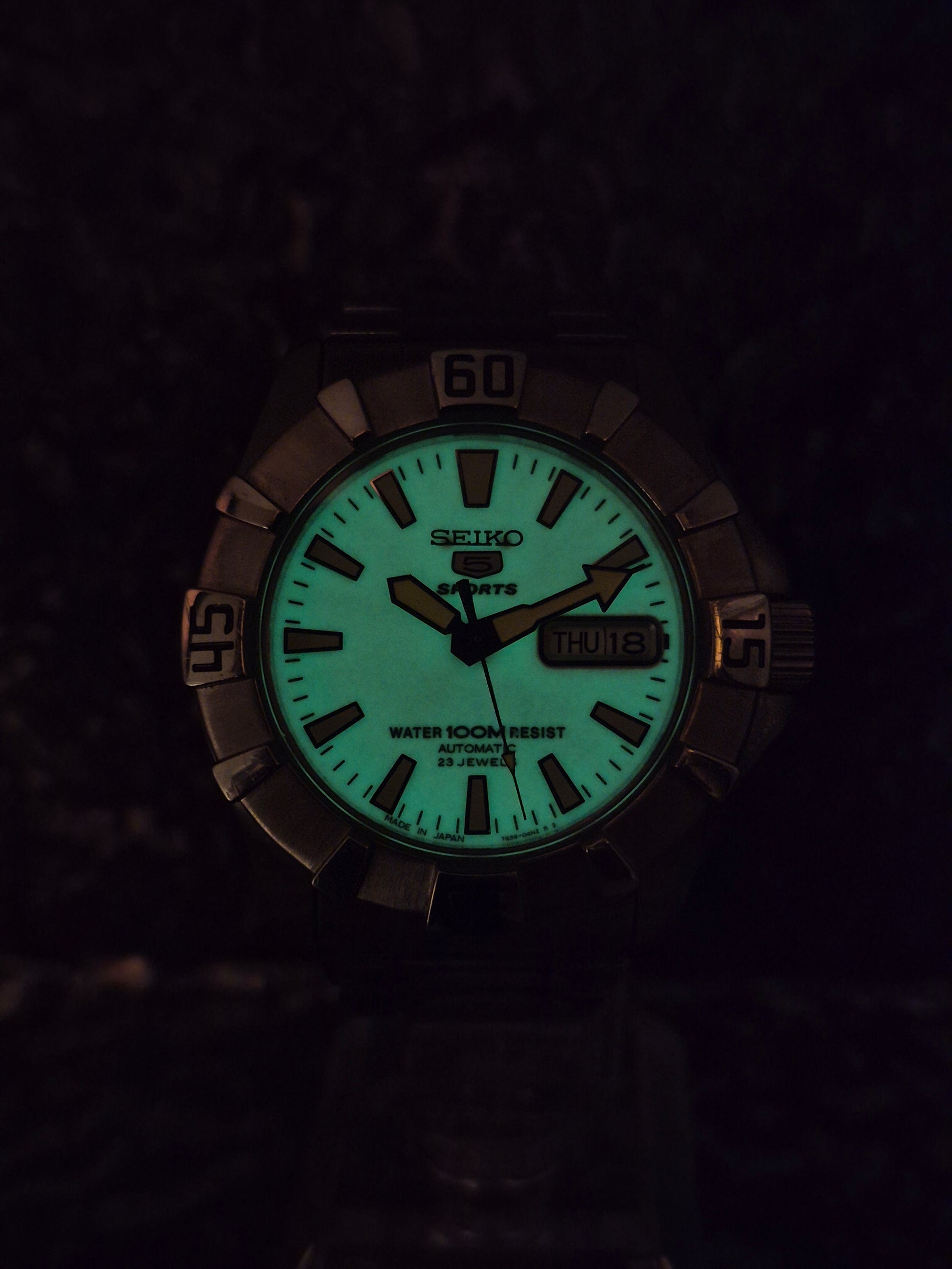 Seiko 5 Sports Full Lume Dial Ref. 7S36-03F0 Automatic Day Date