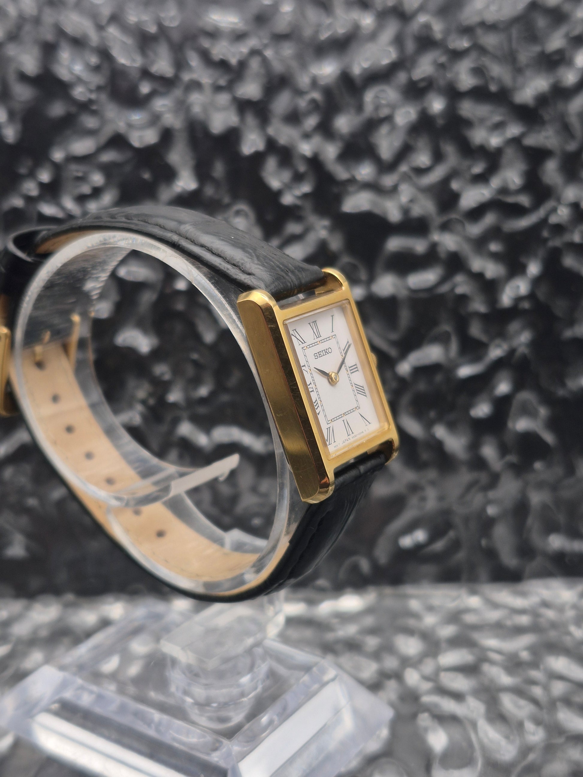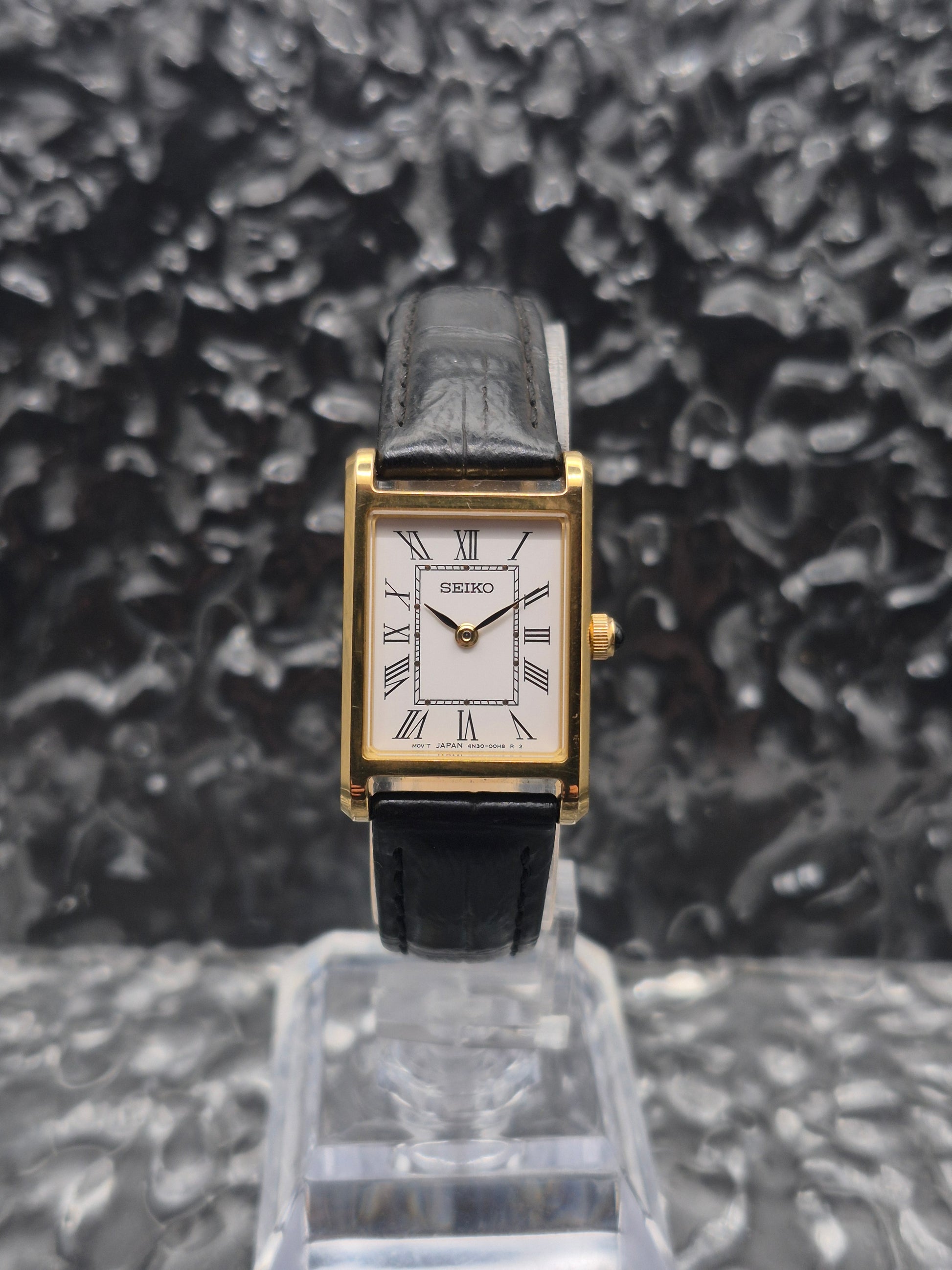 Seiko Gold Tone Quartz Tank Ref. 4N30-00H0 Roman Numerals Ladies