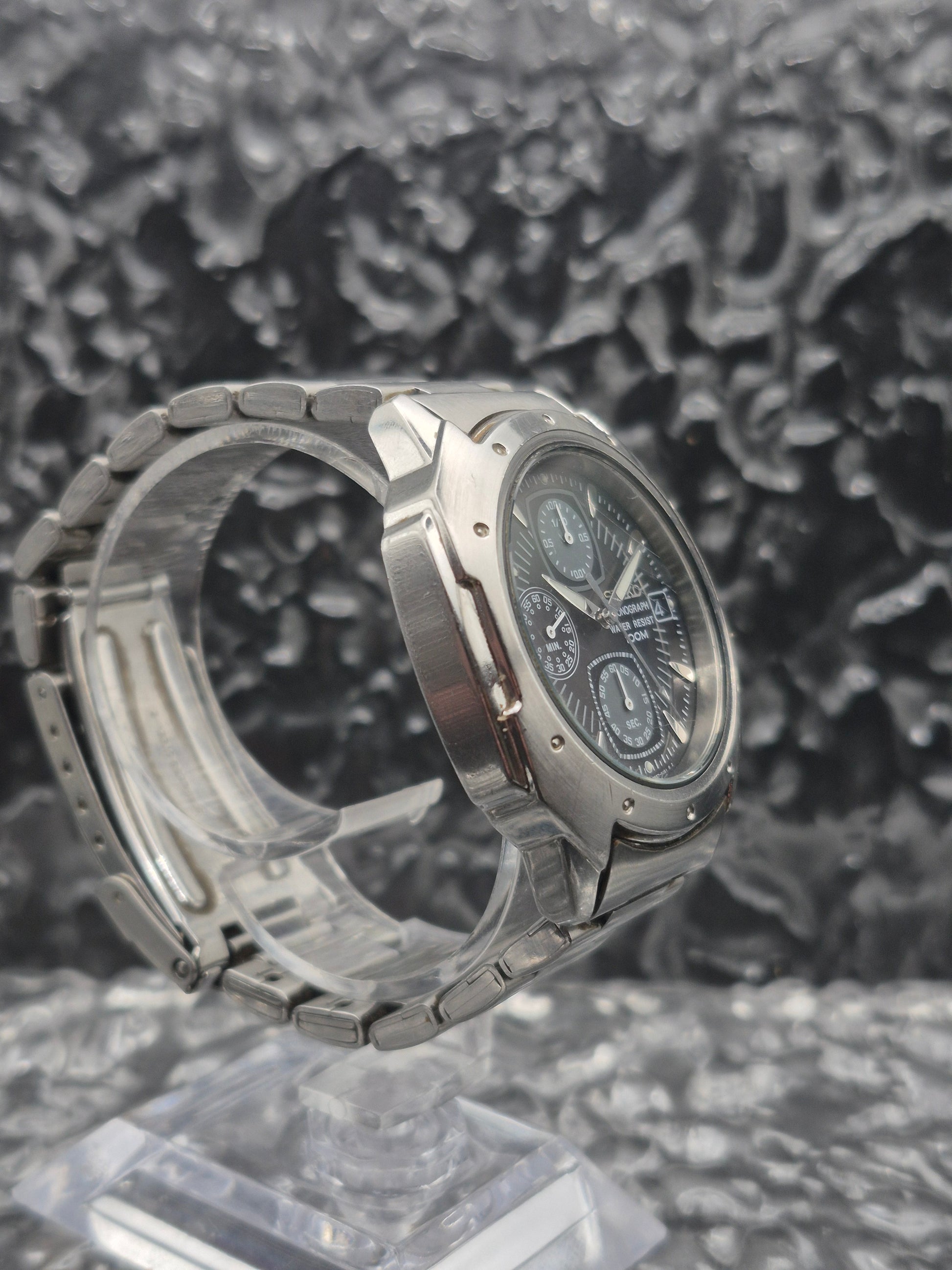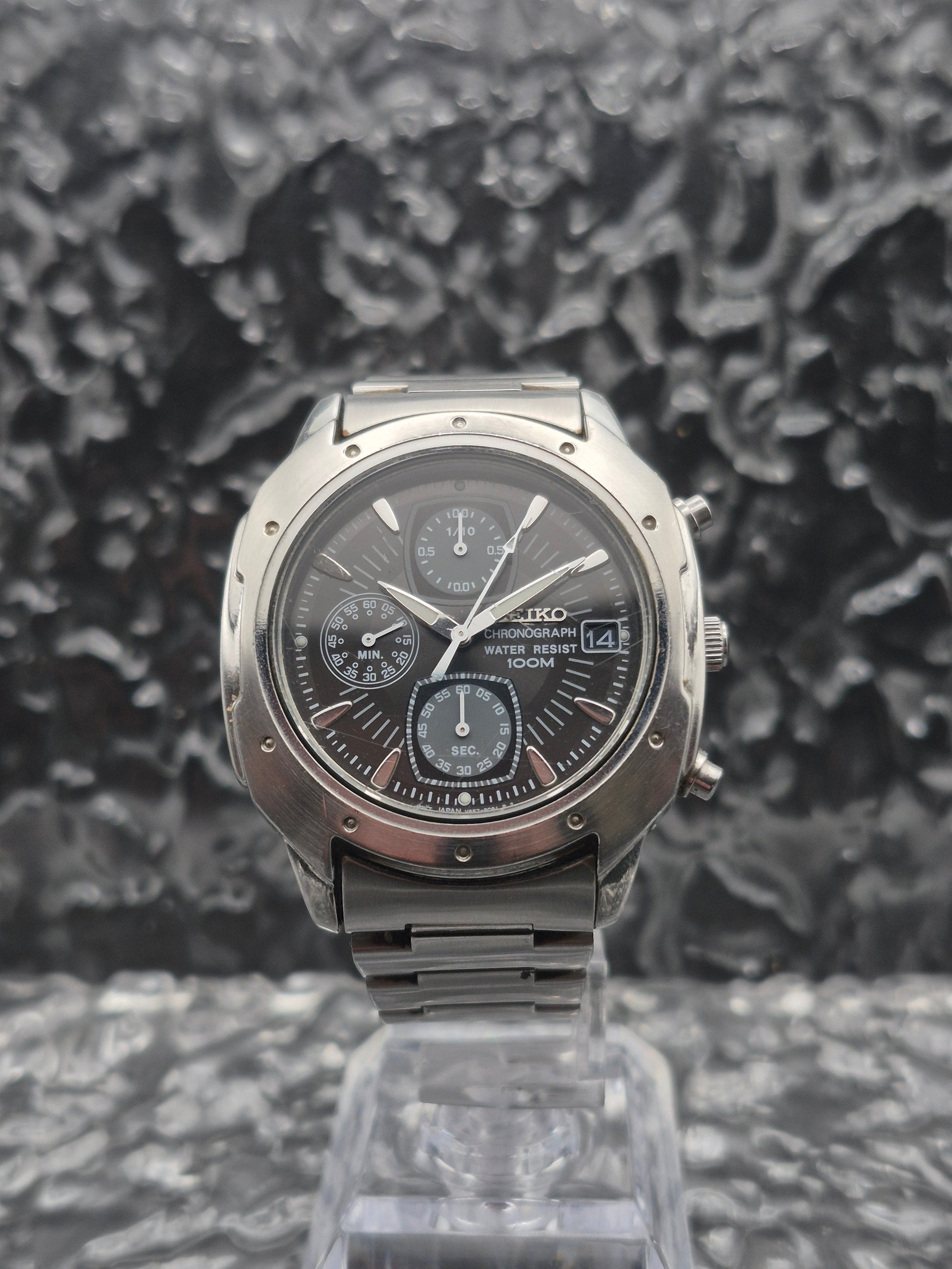 Seiko Quartz Chronograph Ref. V657-9060 Black Dial Men's Vintage